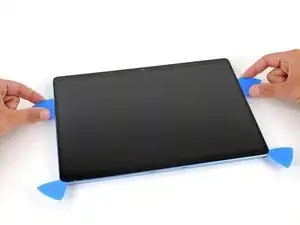 Используйте лопатки, чтобы осторожно приподнять экран, полностью отделяя его от корпуса.