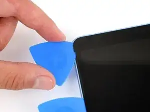 Вставьте третью лопатку под нижний левый угол экрана и скользите вверх по левому краю, остановившись, когда дойдете до дна выреза для левого динамика.