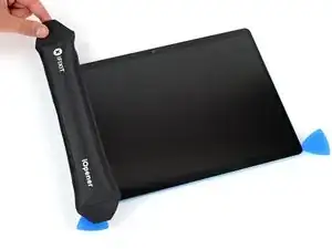 Нагрейте iOpener и положите его на правый край экрана на две минуты, чтобы смягчить клей.