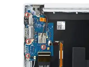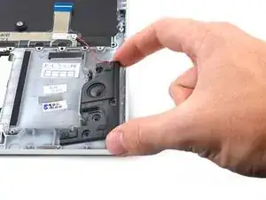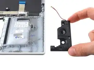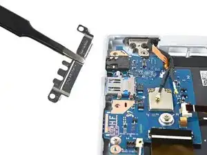 Используйте пластиковую лопатку, чтобы поддеть и отсоединить разъём левого нижнего динамика от дочерней платы.