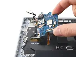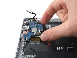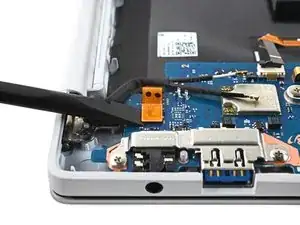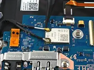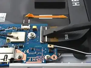 Используйте наконечник лопатки, чтобы поддеть и отсоединить два кабеля антенн WLAN.