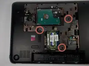 Отверните каждый отмеченный винт 9 мм на задней панели. Это позволит снять клавиатуру.