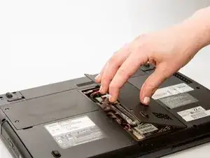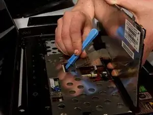 Используйте пластиковую открывалку, чтобы освободить заднюю панель от корпуса ноутбука.