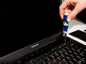 После удаления винта на шаге 3 аккуратно закройте ноутбук и поставьте его экраном вниз. Найдите центральную панель.