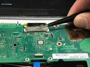 Используйте пинцет, чтобы поднять белую защелку и освободить этот кабель.