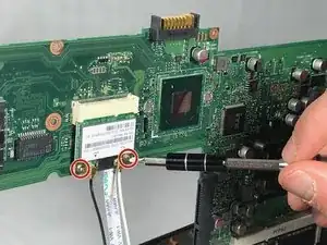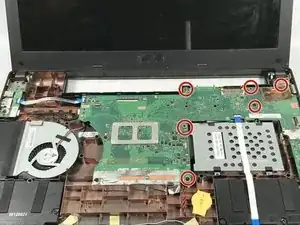 Открутите шесть винтов, которые держат материнскую плату на дне ноутбука, с помощью отвертки Phillips #00.