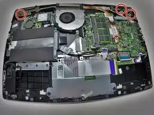 С помощью крестообразной отвёртки удалите два винта 3 мм, фиксирующих аккумулятор.