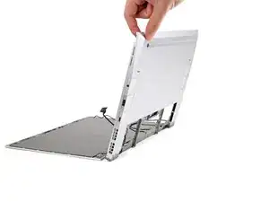 Наклоните ноутбук назад и положите его на верхнюю крышку.