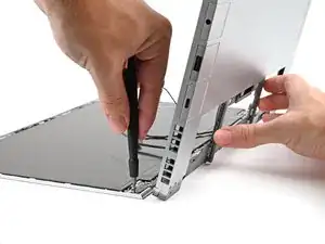 Оттяните накладку от экрана, чтобы освободить первые несколько магнитов.