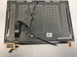 При помощи крестовой отвёртки Phillips #00 удалите два винта 3 мм с крепления петли на крышке ЖК-дисплея.