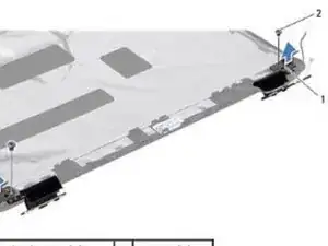 Удалите два винта (по одному с каждой стороны), которые крепят петли дисплея к крышке дисплея, и снимите петли дисплея.