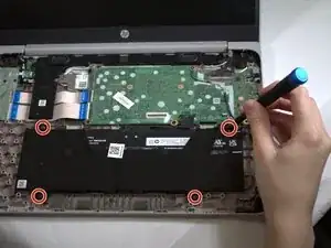 Удалите шесть винтов 6 мм с нижней панели ноутбука с помощью отвертки Phillips #0.