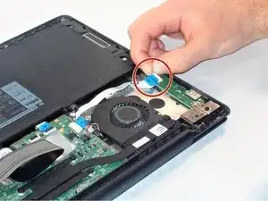 С помощью пальцев отключите соединительный кабель от батареи. Убедитесь, что крепко захватили кабель ближе к соединению с материнской платой, и тяните назад.