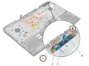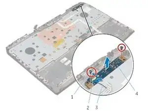 Снимите винты, крепящие плату индикаторов к блоку подложки под ладони.