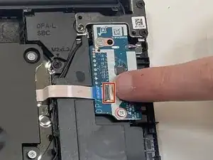 Чтобы отключить кабель от платы кардридера, используйте кончик лопатки или ноготь, чтобы поднять маленькую защёлку ZIF‑разъёма. Затем аккуратно выньте кабель.