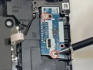 Используйте крестовую отвертку Phillips #1, чтобы выкрутить два винта 3,0 мм, закрепляющие плату кардридера на шасси.