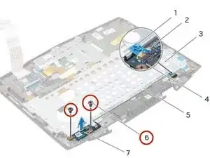 Замените винты, закрепляющие плату кнопки питания на верхней части корпуса для опоры кисти.