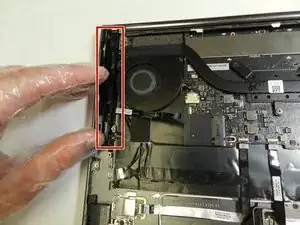 Потяните аккуратно влево, параллельно корпусу ноутбука.