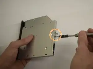 Меньшей крестообразной отвёрткой выкрутите винты на задней части привода, затем снимите маленький металлический кронштейн.