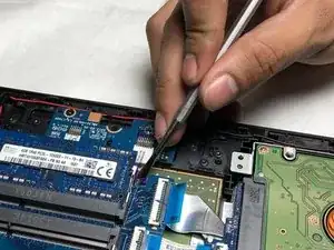Поднимите и снимите плату кнопки трекпада.