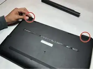 Поднимите аккумулятор за середину, чтобы извлечь его из ноутбука.
