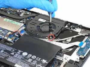 Удалите все винты, крепящие вентилятор к ноутбуку.