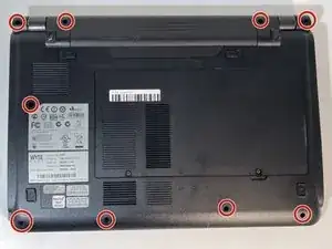 Переверните устройство. Открутите девять маркированных винтов Phillips #1 размером 7 мм.