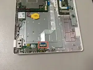 Удалите соединитель батареи из разъёма, потянув кабель от петли с помощью пальцев или пластикового инструмента для открывания.