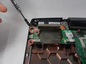Удалите три винта Phillips №0 длиной 5 мм, крепящие плату USB-портов.