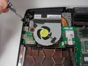 Удалите вентилятор из ноутбука.