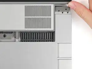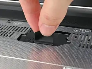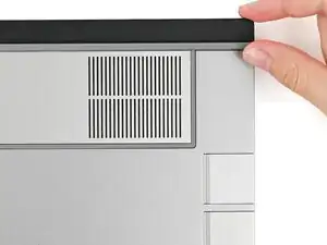 Используйте пальцы, чтобы сдвинуть распорку тачпада к нижнему краю ноутбука и отщёлкнуть её.
