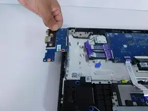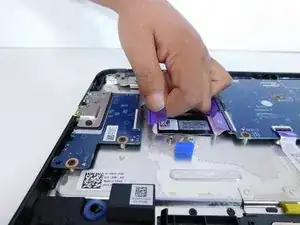 Отсоедините первый фиолетовый кабель ввода-вывода, приподняв его и потянув от разъема платы ввода-вывода.