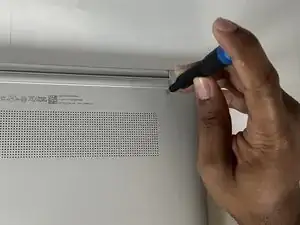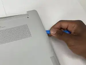 Вставьте приёмник для вскрытия в зазор между нижней крышкой и шасси, рядом с петлёй.