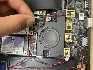 Используйте отвертку Phillips #0, чтобы открутить два винта, удерживающих динамик на месте. Снимите панель динамика.