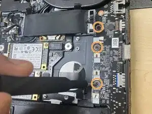 Используйте отвертку Phillips #0, чтобы открутить три винта, удерживающих плату на месте.