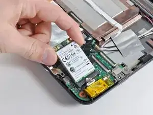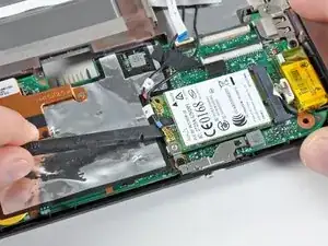 Схватите плату WWAN и потяните её прямо, чтобы вынуть из разъёма на материнской плате.