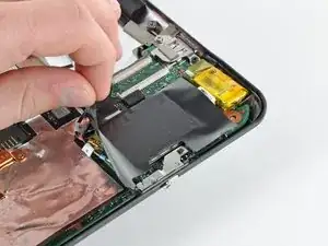 Вытяните ленточный кабель SIM-карты из разъёма и отклейте его от верхней части корпуса жёсткого диска.