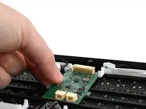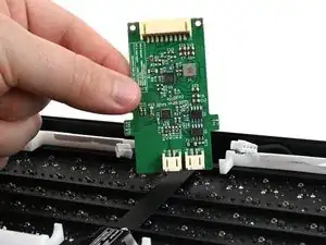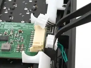 Используйте пинцет или пальцы, чтобы отсоединить скользящие коннекторы аккумуляторов от платы зарядного устройства.