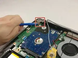 Используя пластиковый инструмент для открытия, приподнимите показанный механизм до того момента, пока ваши пальцы не смогут поместиться под ним.