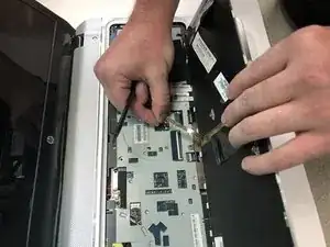 Аккуратно подденьте клавиатуру пластиковой инструментом.