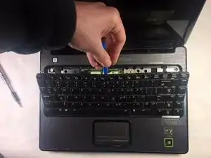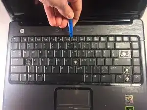Аккуратно вставьте резиновую лопатку под край клавиатуры.