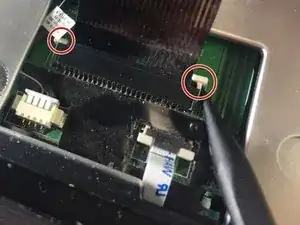 Используйте пластиковую лопатку, чтобы открыть два белых подвижных разъёма, расположенных слева и справа, аккуратно сдвинув их наружу.