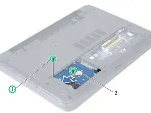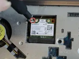 Выкрутите винт длиной 3 мм с крестообразным шлицем №000, фиксирующий модуль Wi-Fi.