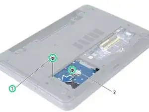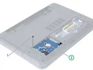 Выкрутите винты, фиксирующие блок жёсткого диска к основанию компьютера.