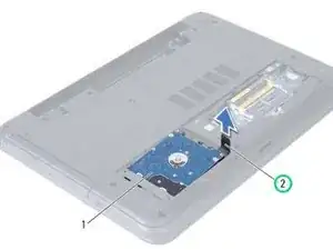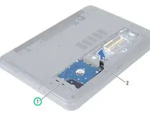 Сдвиньте блок жёсткого диска вперёд, чтобы отключить его от системной платы.