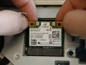 Приподнимите модуль Wi-Fi и извлеките его из ноутбука.