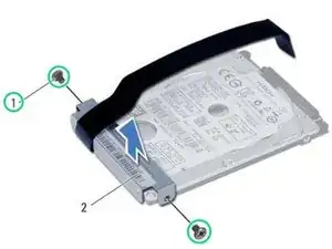 Установите винты, крепящие кронштейн жёсткого диска к жёсткому диску.