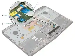 Установите винты, фиксирующие узел подставки под ладони к основанию компьютера.