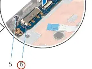 Отклейте ленту, фиксирующую кабель кнопки питания на системной плате.