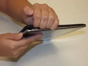 Цель состоит в том, чтобы отделить черное от серебристого. Начинайте с угла или плоской кромки — что вам удобнее. Помните, не используйте слишком много силы.